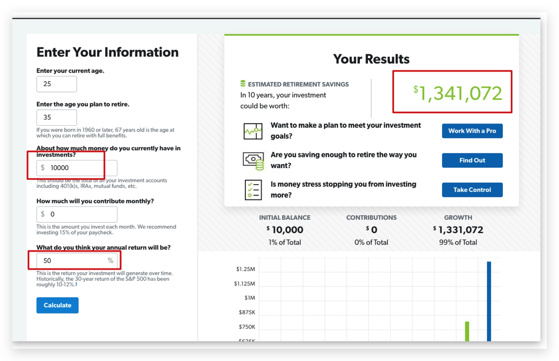 믿기지 않으시면 본인이 직접 이 사이트 가셔서 해보세요: https://www.ramseysolutions.com/retirement/investment-calculator